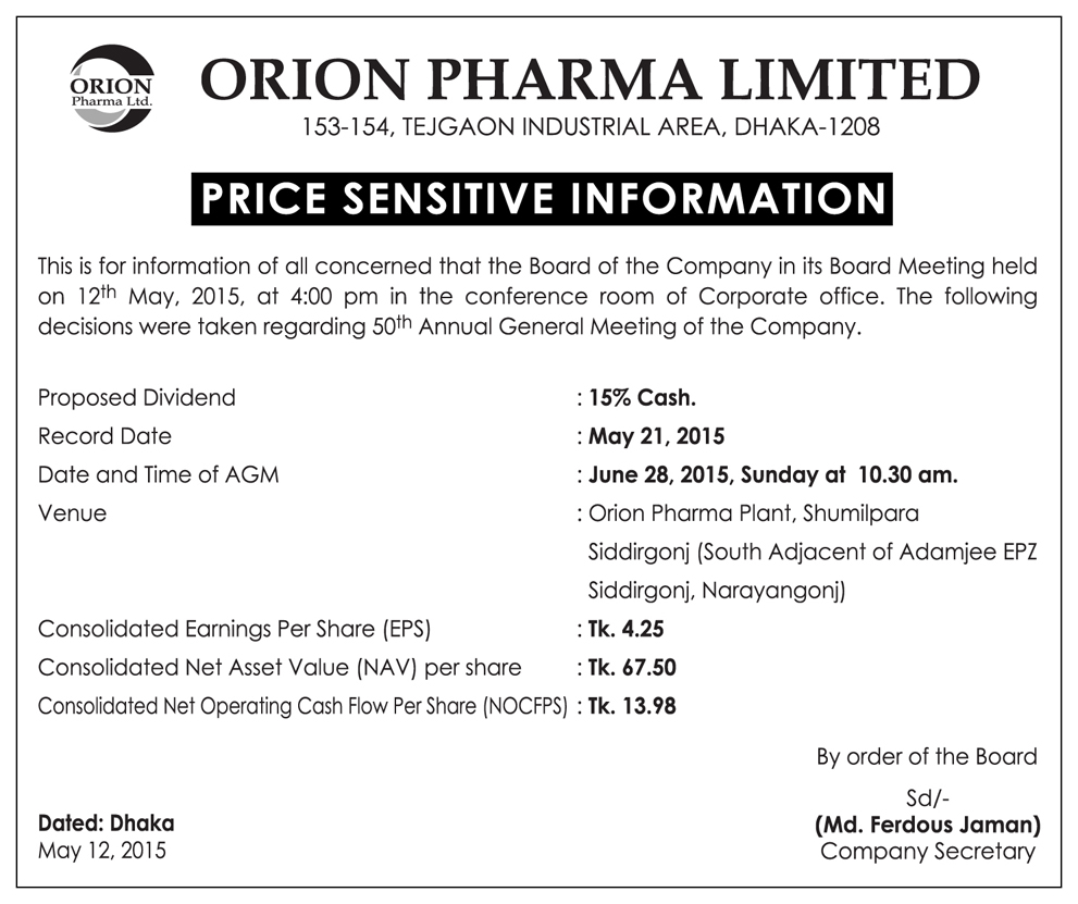 Price Sensitive Information Q1 March 31, 2015