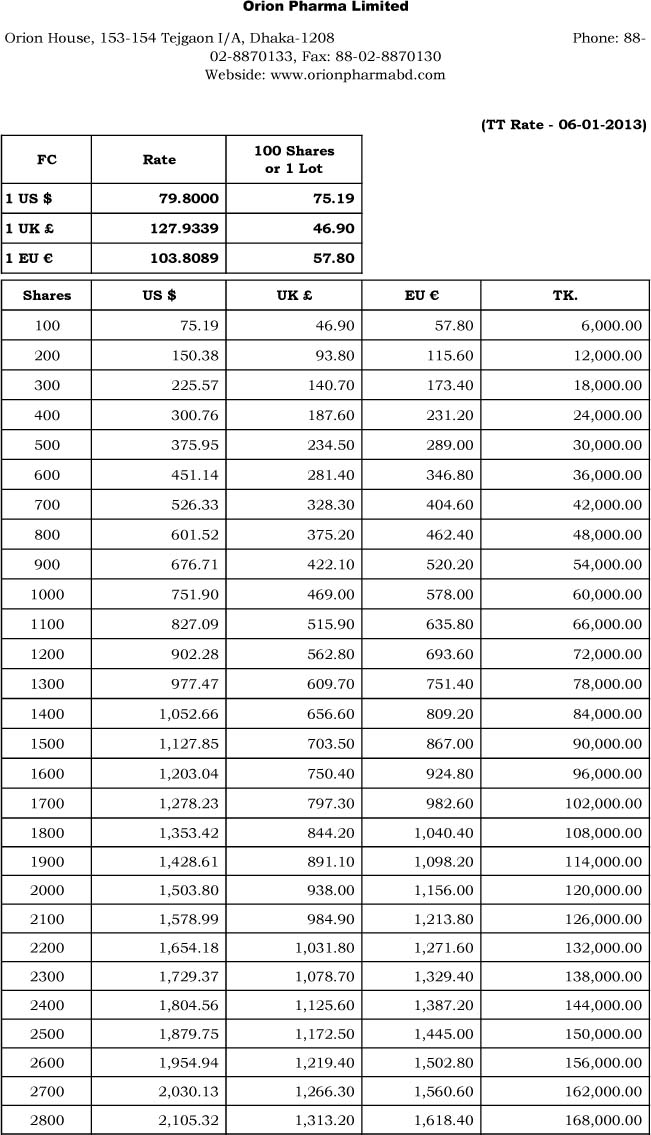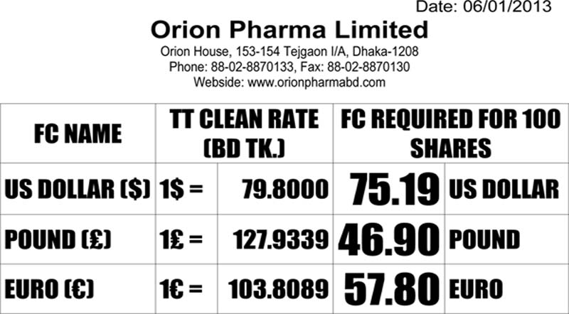We are pleased to announce that the IPO (Initial Primary Offerings) subscription of Orion Pharma Limited will be held according to following schedule: For Resident Bangladeshis: Subscription Open